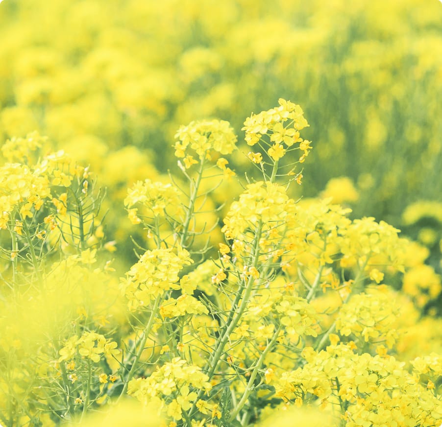 「なの花」は、春の風物詩としていつも新鮮な息吹を伝えてくれます。「なの花」の鮮やかな黄色は、元気を与えてくれる力となり、大地に広がる花畑は人々の心の拠り所となります。